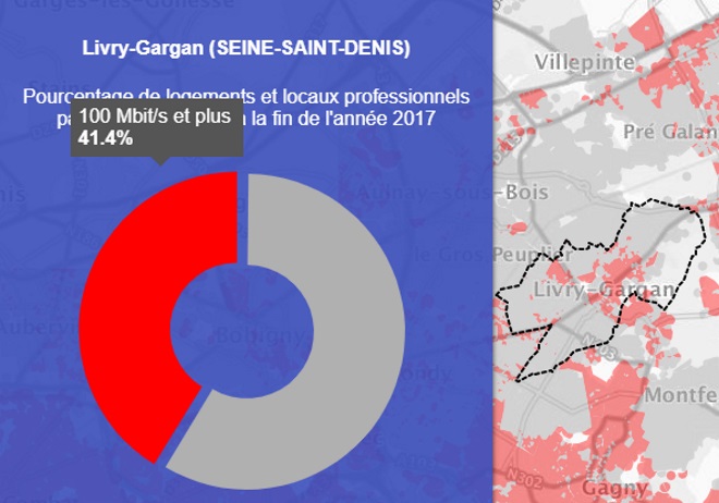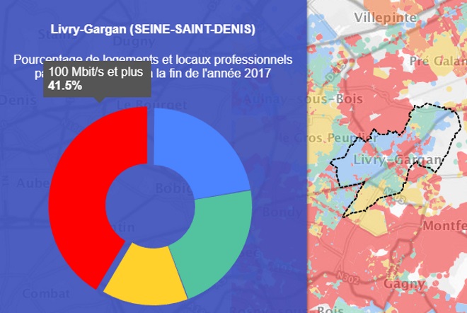 Grâce à la première carte on peut voir que la ville de Livry-Gargan est couverte à 41.5% par le très haut débit.