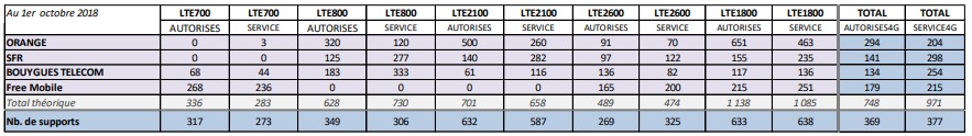 Le bilan des sites 4G mis en service en métropole s’établit comme suit :