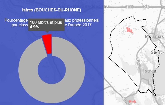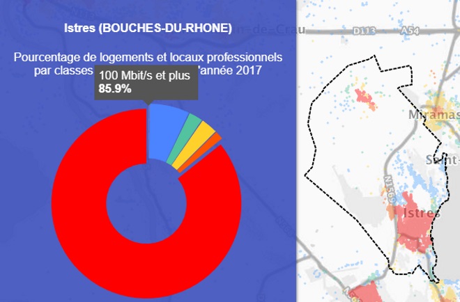 Grâce à la première carte on peut voir que la ville de Istres est couverte à 87.5% par le très haut débit.