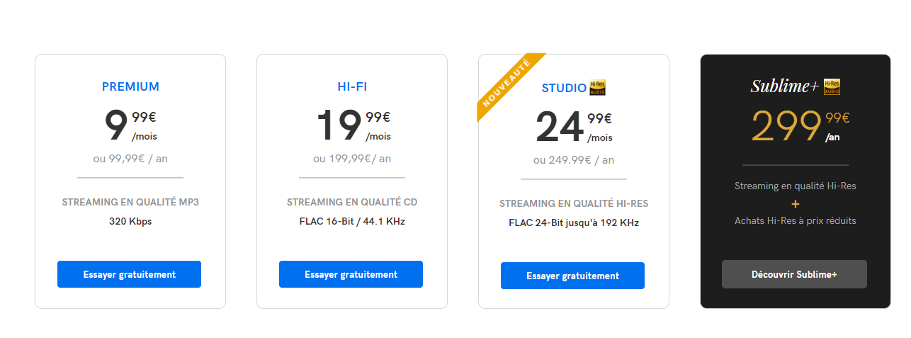 Baptisée "Studio", ce nouvel abonnement permet de profiter d’un catalogue de 40 millions de titres avec une qualité audio haute définition (Hi-Res FLAC 24-bit jusqu’à 192 KHZ) à moins de 25€. L’offre se démarque ainsi de l’abonnement Premium à 9,99€ pour une qualité d’écoute MP3 et « Hi-Fi » à 19,99€ en qualité CD. Dès à présent disponible sur le site de la plateforme, cette offre sera accessible directement depuis la Freebox Révolution "d’ici la fin de l’année à la suite d’une mise à jour", nous informe Qobuz. En attendant, les abonnés "Studio" via le site du service musical, peuvent déjà streamer en Hi-Res sur la Freebox. A noter que le premier mois est offert.