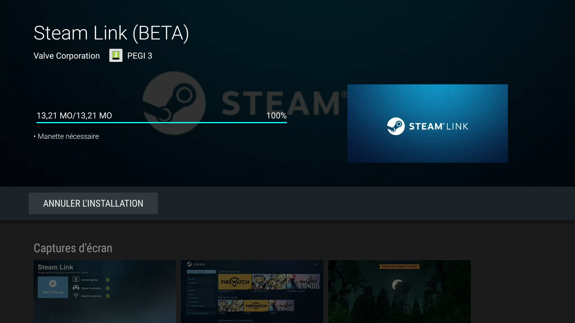 Il est conseillé d’avoir lancé Steam sur le PC avant d’installer l’application, de sorte à ne pas avoir à faire trop d’aller retour entre votre TV et votre ordinateur.