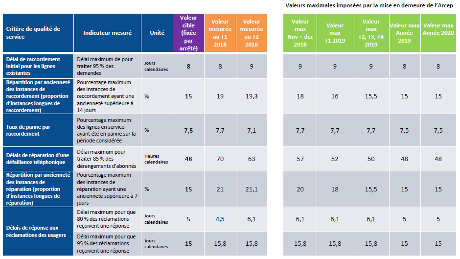 "Au vu des indicateurs des deux premiers trimestres de l’année, nous sommes très préoccupés quant à sa capacité à atteindre ses objectifs annuels. Sur les douze indicateurs, sept ne sont pas au niveau, avec des écarts significatifs. Par exemple, le délai maximum pour traiter 85 % des dérangements d’abonnés était de 70 heures au lieu de 48 heures au premier trimestre", précise le président de l’Autorité, Sébastien Soriano, dans une interview accordée hier au Figaro.