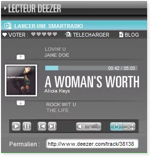En effet, le site de musique en ligne Deezer lance un nouveau lecteur personnalisable et exportable sur une page perso, un blog, un site internet.