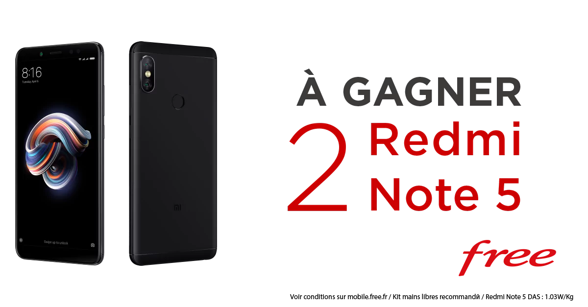 Comme il le fait assez régulièrement, Free lance un nouveau jeu concours sur Twitter et met en jeu cette fois deux Xiaomi Redmi Note 5 d’une valeur unitaire de 199€ à l’occasion de l’entrée de ce modèle dans la boutique en ligne.