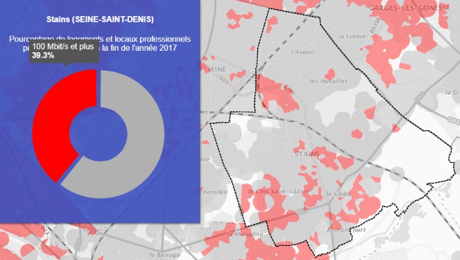 Aujourd’hui, grâce aux données fournies par l’Observatoire France Très Haut Débit, nous vous proposons de découvrir le déploiement du très haut débit pour tous les opérateurs sur la 188ème ville la plus peuplée de France : Stains.