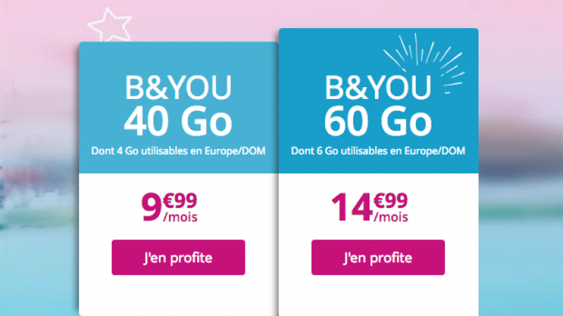 La guerre des prix continue à l’approche de Noël même si elle est moins forte que l’année dernière. Bouygues Telecom vient de lancer deux "séries spéciales B&YOU" à cette occasion. Ainsi jusqu’au 4 décembre prochain, l’opérateur propose deux forfaits, l’un incluant 40 Go de données à 9,99€/mois et le second comprenant une enveloppe de 60 Go, au prix 14,99€/mois.