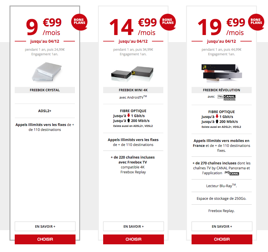 Pour rappel, en mai dernier, l’opérateur de Xavier Niel a lancé ses nouvelles offres, faisant ainsi évoluer son système de tarification en s’alignant sur ses concurrents. Les offres historiques sont, elles, toujours disponibles. Fin juin sont apparus les "Bons plans de l’été", ces derniers ont été renouvelés à la rentrée et perdurent depuis.
