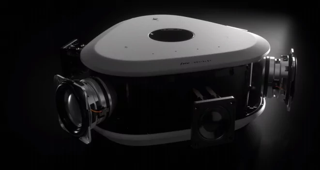Alors que se cache t-il sous le capot du Player Free Devialet ? Premier constat, on distingue un boîtier robuste intégrant les 3 haut-parleurs de grave conçus sur-mesure par Devialet, pour tenir dans un seul appareil compact et 3 autres haut-parleurs full-range positionnés à 120° qui restituent l’ambiance sonore à 360°. Sur le circuit imprimé rouge que nous a présenté un développeur, vous pouvez découvrir l’APU Snapdragon 835 de Qualcomm intégré dans le player. Enfin, dans les mains de Xavier Niel, vous pouvez entrevoir la carte mère et un radiateur volumineux.