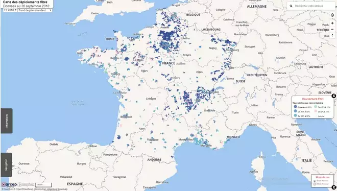 En décembre 2018, et dans un souci de transparence autour du déploiement de l’Internet très haut débit en France, l’Arcep a mis en ligne une carte interactive. Accessible au grand public à l’adresse
