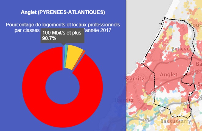 Aujourd’hui, grâce aux données fournies par l’Observatoire France Très Haut Débit, nous vous proposons de découvrir le déploiement du très haut débit pour tous les opérateurs sur la 194ème ville la plus peuplée de France : Anglet.