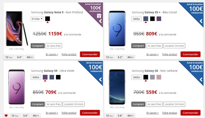 Galaxy S9+ : 809 euros, au lieu de 959 euros (+ ODR de 100 euros)