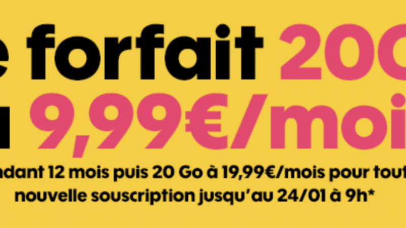Jusqu’au 24 janvier prochain, Sosh brade son forfait 20 Go à 9,99€/mois pendant un an au lieu de 19,99€.