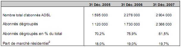 La base d’abonnés ADSL de Free s’établit ainsi à 2 904 000 au 31 décembre 2007. La part de marché de Free sur les abonnements ADSL français au 31 décembre 2007 était de plus de 19,7%, contre 19,0% à fin 2006.