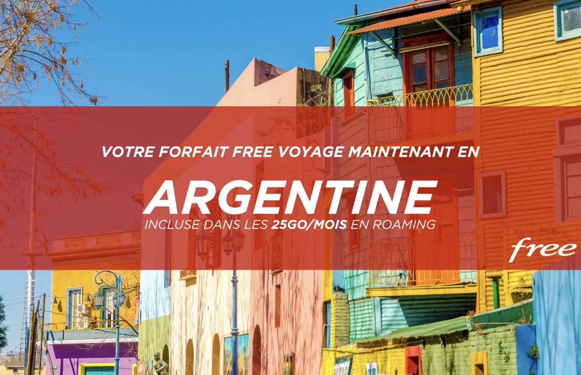Deux semaines après la Tunisie, Free renforce une nouvelle fois son forfait à 19,99€/mois en ajoutant l’Argentine parmi les destinations bénéficiant de l’enveloppe de 25Go/mois d’Internet mobile en roaming incluse dans son offre.
