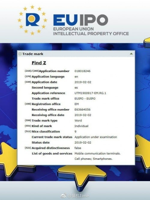 Oppo vient d’enregistrer le nom Find Z auprès de l’European Union’s Intellectual Property Office, qui gère la propriété intellectuelle dans l’Union européenne. Le smartphone Find X de mi-2018 avec son design coulissant aura donc un successeur.