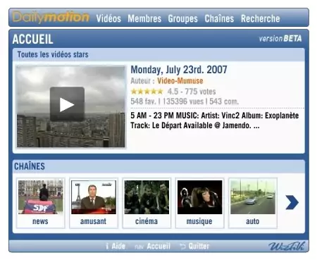 Nous vous évoquions très récemment l’imminente apparition de Dailymotion HD dans le bouquet Neuf TV. Eh bien sachez que c’est chose faite depuis aujourd’hui, les neufnautes ont désormais l’accès à ce service sur le canal 100 de leur téléviseur (ou du moins les abonnés qui disposent du décodeur Neuf TV HD).
