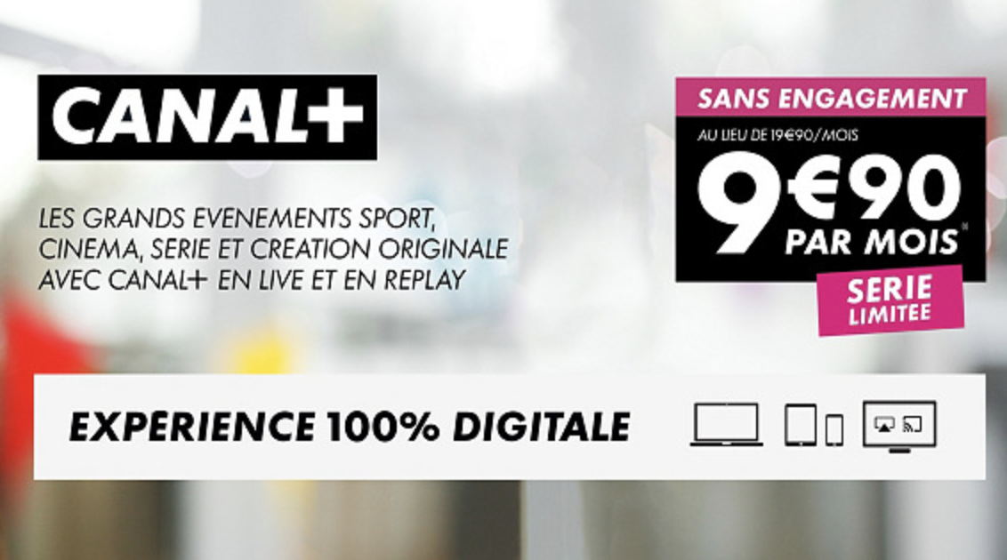 Dans le détail, l’offre comprend l’abonnement à CANAL+ et donne accès à Canal+ Décalé ou encore à myCanal et le service de replay. Le mode de réception est "100% digital" (PC/MAC, Tablette, Smartphone et sur TV via Airplay et Chromecast). A noter que LeKiosk est inclus dans l’abonnement et permet de télécharger gratuitement jusqu’à 10 magazines par mois. L’offre est valable pour toute personne non abonnée aux offres CANAL avec ou sans engagement. A défaut de résiliation avant la date d’échéance mensuelle, l’abonnement est reconduit pour des périodes successives d’un mois au tarif de 9,90€/mois.