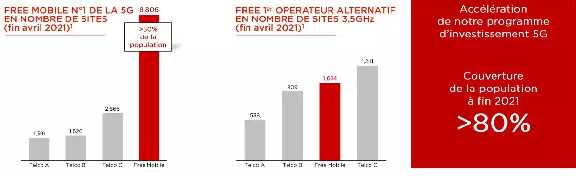 Des objectifs ambitieux, mais réalisables. En six mois à peine, l’opérateur a atteint les 50% de la population couverte en 5G et ne compte pas s’arrêter là. En marge de la présentation de ses résultats trimestriels, l’opérateur annonce un nouvel objectif de couverture : plus 80% de la population devrait pouvoir se connecter au réseau 5G de Free Mobile à fin 2021.