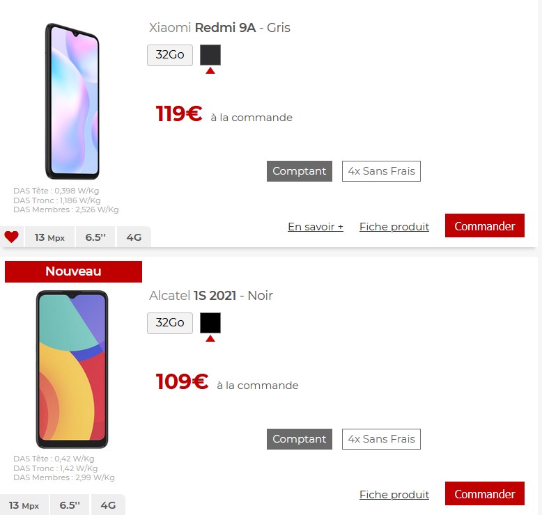 Avec le choc des smartphones, Univers Freebox vous propose des comparatifs entre les smartphones vendus à tarifs équivalents via la boutique de Free Mobile, au grès des nouvelles disponibilités et des mouvements de prix. Il s’agit de vous aider à choisir en fonction de vos attentes. Aujourd’hui, nous opposons les Xiaomi Redmi 9A à 119 euros et Alcatel 1S 2021 à 109 euros. Il s’agit des smartphones les moins chers de la boutique. Notez d’ailleurs qu’ils sont disponibles en plusieurs fois sans frais.