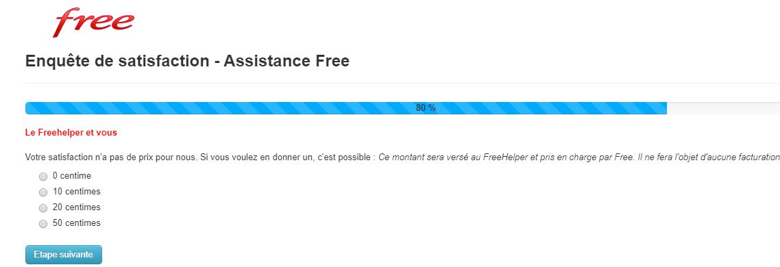 Lauréat du prix Excellence Client 2019 pour la seconde année consécutive, l’assistance Free a notamment été récompensée pour sa faculté à se réinventer dans l’expérience relationnelle avec ses abonnés mais aussi pour son travail sur la modélisation du lien entre satisfaction collaborateur et client. Dans ce cadre, le service Face to Free apparaît comme une vraie réussite. Si l’application n’a pas été mise à jour depuis 2015, une nouveauté a toutefois fait son apparition récemment, à savoir la possibilité de laisser un "pourboire" à la suite d’un échange avec un FreeHelper. Plus concrètement, à la fin de l’habituelle enquête de satisfaction proposée à la suite un appel vidéo avec l’assistance, apparaît dorénavant le message : "Votre satisfaction n’a pas de prix pour nous. Si vous voulez en donner un, c’est possible. Ce montant sera versé au FreeHelper et pris en charge par Free. Il ne fera l’objet d’aucune facturation." Les "pourboires" proposés, sont ainsi compris entre 0 et 50 centimes.