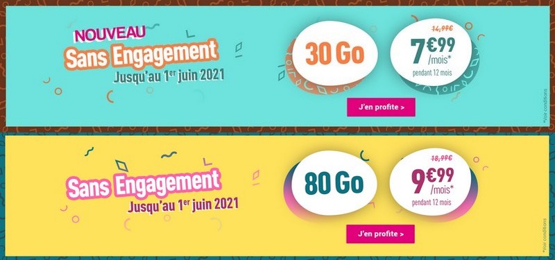 Jusqu’au 1er juin 2021, Coriolis, opérateur mobile virtuel lancé en 1989 et disposant d’un réseau de 300 boutiques propres et affiliées, propose des forfaits mobiles 30 et 80 Go sans engagement à prix cassé pendant un an. Durant les 12 premiers, ils reviennent en effet à 7,99 et 9,99 euros, avant de passer 14,99 et 18,99 euros. Il faudra rajouter 10 euros pour la carte SIM triple découpe, à payer au moment de la commande.