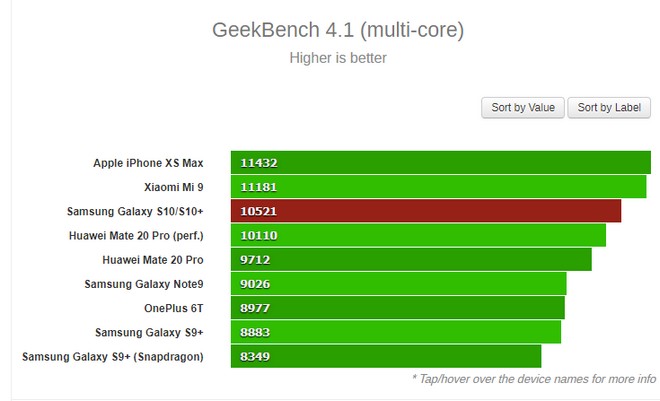 GSMArena vient de publier plusieurs résultats de benchmarks, afin de comparer le smartphone Samsung Galax S10+ fraîchement annoncé avec l’Apple iPhone XS Max officialisé quelques mois plus tôt.