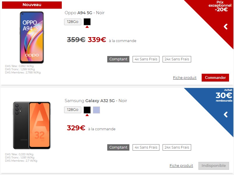 Avec le choc des smartphones, Univers Freebox vous propose des comparatifs entre les smartphones vendus à tarifs équivalents via la boutique de Free Mobile, au grès des nouvelles disponibilités et des mouvements de prix. Il s’agit de vous aider à choisir en fonction de vos attentes. Aujourd’hui, nous opposons les Oppo A94 5G à 339 euros et Samsung Galaxy A32 5G à 329 euros. Notez d’ailleurs qu’ils sont disponibles en plusieurs fois sans frais.