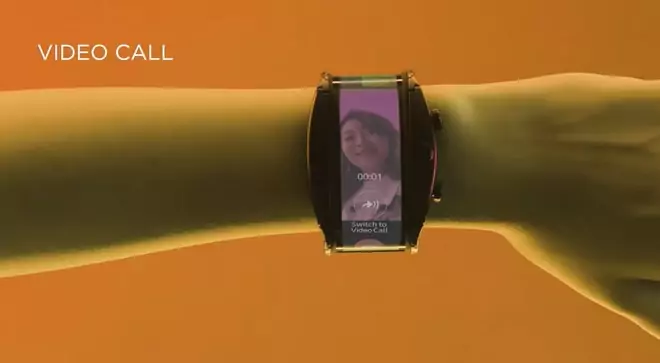 L’affichage et les contrôles passent par un écran OLED (4 pouces en 960 x 192 pixels au ratio 36/9) fruit d’une collaboration avec Visionox qui s’enroule autour du poignet. L’alimentation repose sur une batterie 500 mAh assurant un à deux jours d’autonomie. Côté chipset, on trouve la plate-forme Snapdragon Wear 2100 avec une mémoire vive 1 Go.