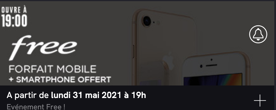 Après avoir lancé la semaine dernière et ce jusqu’au 11 juin, une vente privée Freebox Révolution avec TV by Canal à 9,99€/mois pendant 1 an, Free s’apprête à dégainer une nouvelle offre mobile sur le site d’e-commerce Veepee. Dès ce lundi 31 mai à 19h, l’opérateur y proposera son forfait 150 Go à 19,99€/mois avec un smartphone offert, le tout pour un engagement de 24 mois. Il s’agira cette fois d’un iPhone 8 reconditionné.