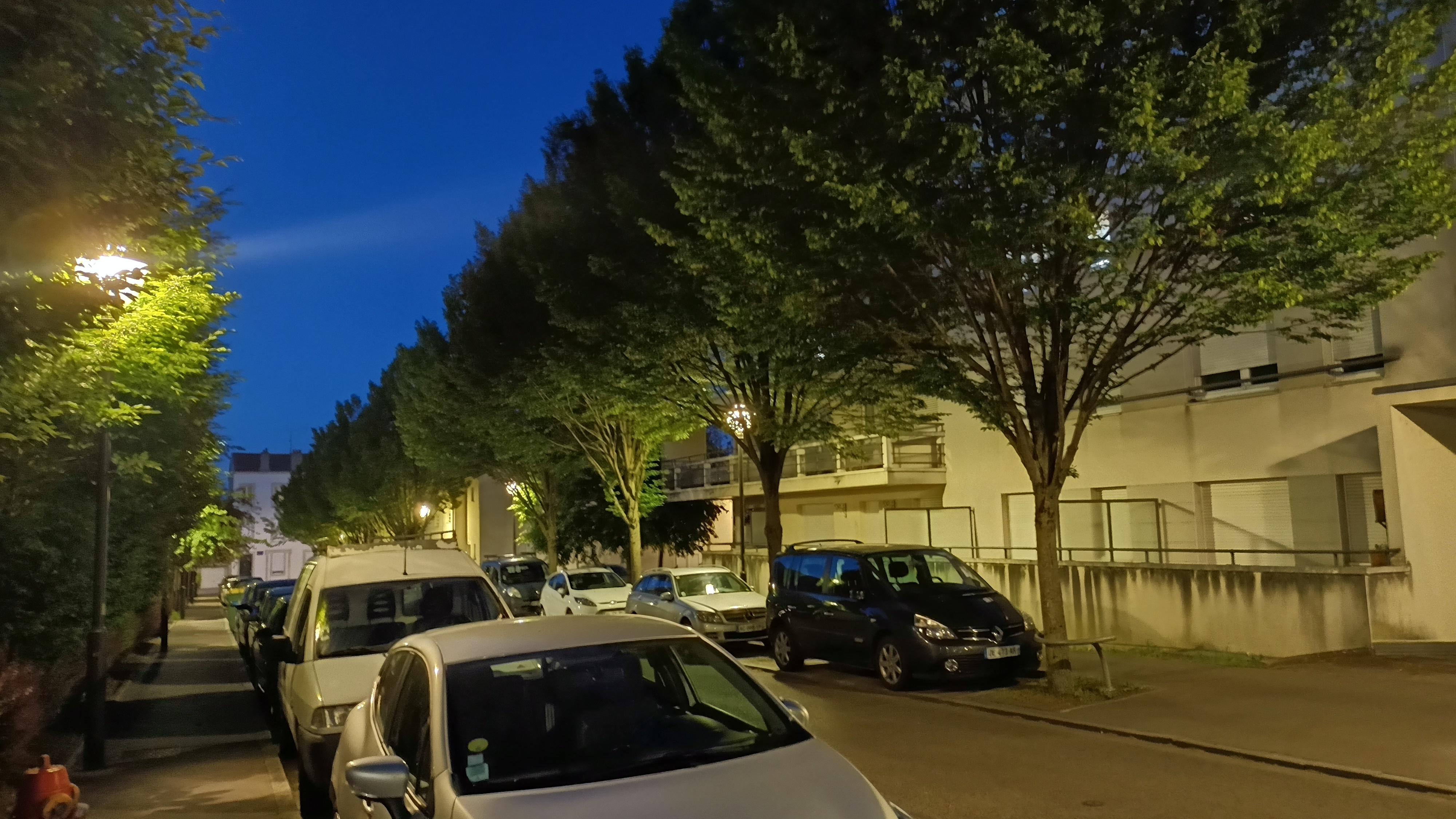 Deux photos de nuit, puis leurs versions corrigées par le mode dédié'(“Nuit” dans la barre d’options principale) :