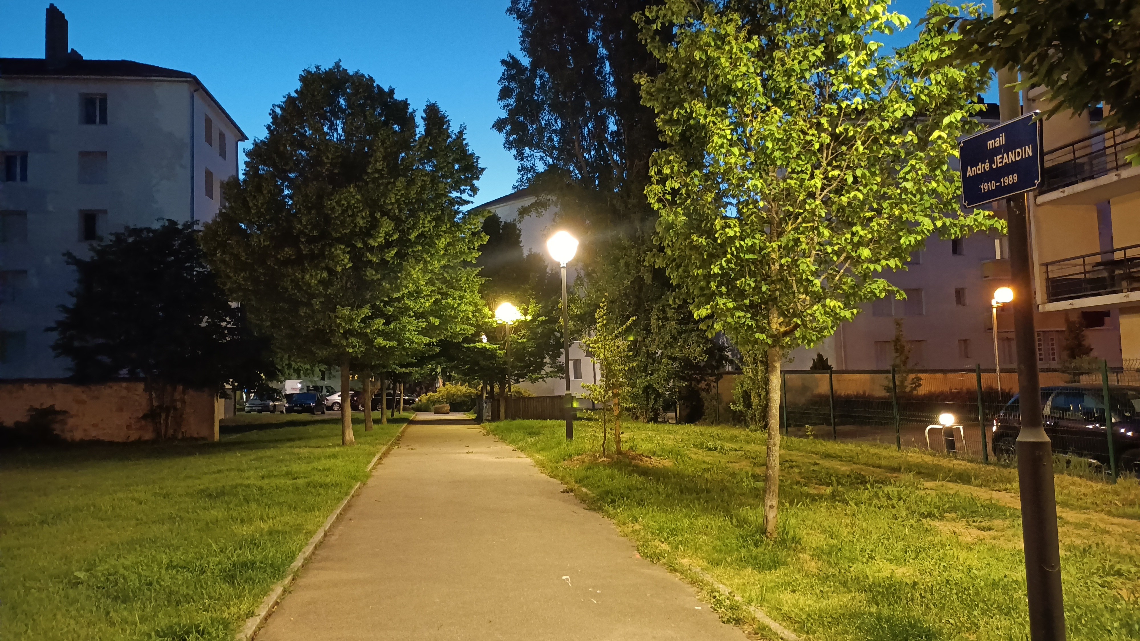 Deux photos de nuit, puis leurs versions corrigées par le mode dédié'(“Nuit” dans la barre d’options principale) :