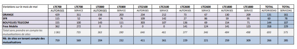 Le bilan des sites 4G mis en service en métropole s’établit comme suit :