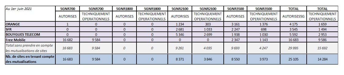 L’ANFR vient de publier son observatoire du déploiement de la 5G. Au 1er juin 2021, 29 995 sites étaient autorisés, dont 15 692 techniquement opérationnels.