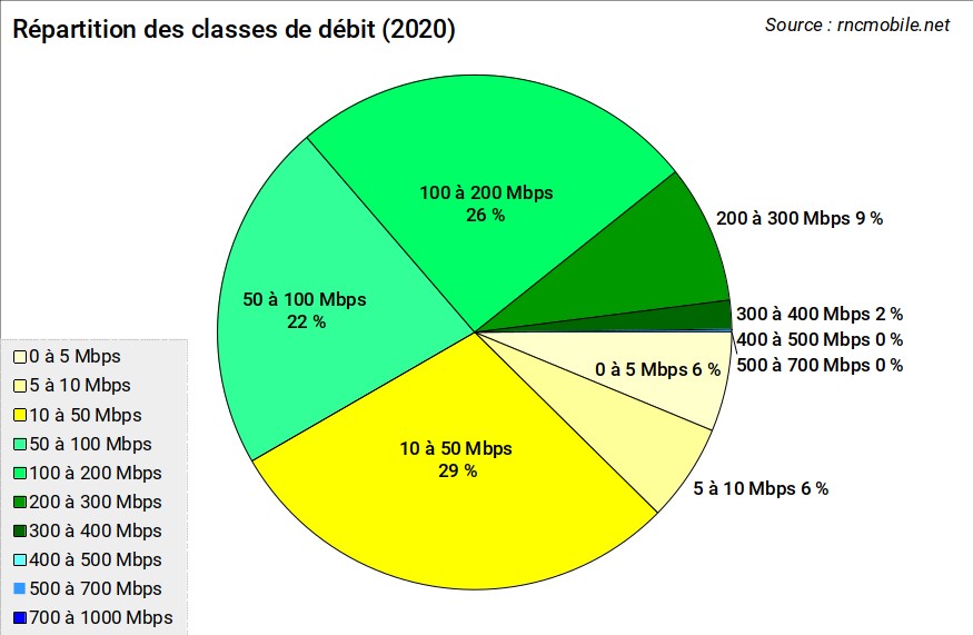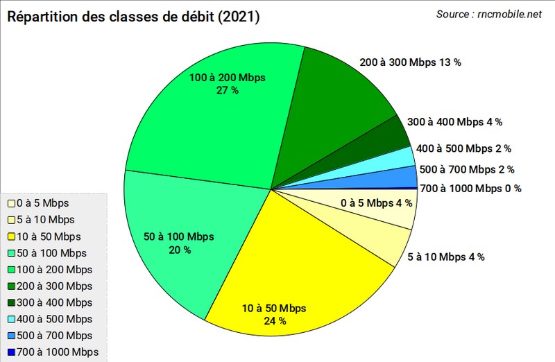 Près de 50 % avec un débit à 100 Mbit/s et plus