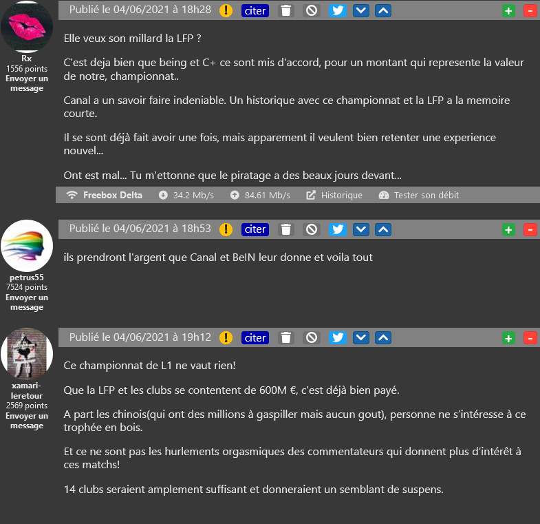 Si Canal+ et beIN proposent une solution pour la diffusion du championnat français, celle-ci ne convient pas à la LFP, qui estime les montants proposés trop faibles pour être rentables. Des exigences vivement critiquées par certains de nos lecteurs.