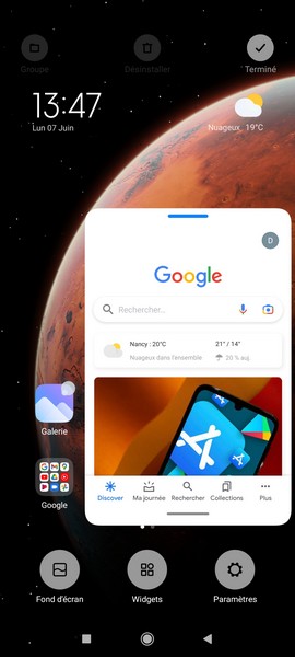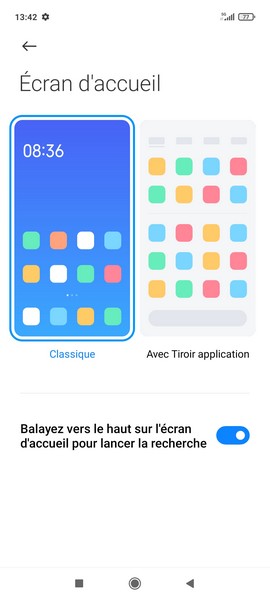 - L’écran d’accueil avec ou sans tiroir d’applications