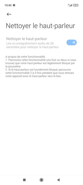Côté son, rien de folichon. Le son sort uniquement de la tranche inférieure et manque un peu de relief. Au moins ne sature-t-il pas trop vite. Un haut-parleur que l’on pourra d’ailleurs nettoyer depuis les paramètres.