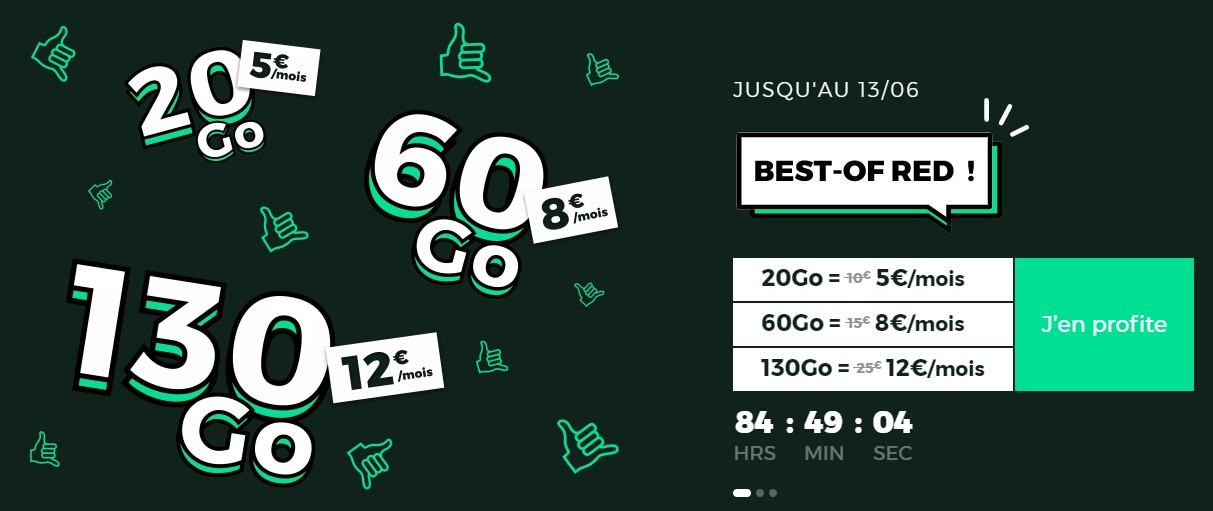 Jusqu’au 13 juin 2021, la marque low cost de l’opérateur au carré rouge commercialise trois forfaits mobile à prix cassé. Des forfaits d’ailleurs sans engagement.