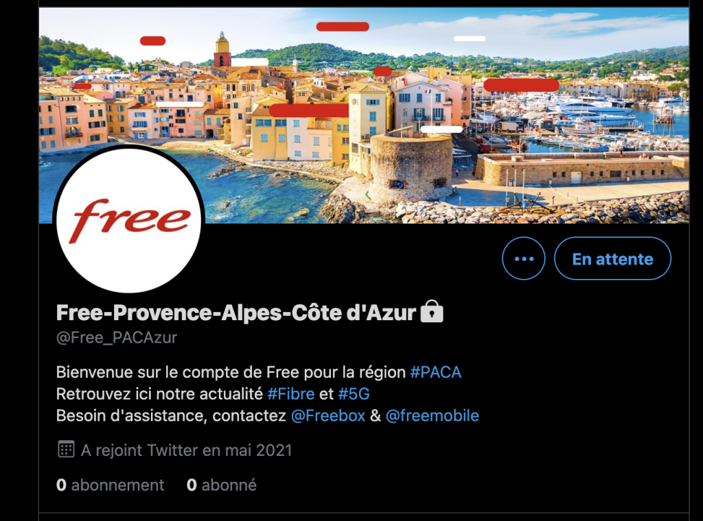 L’opérateur s’apprête à activer un compté dédié et baptisé @Free_PACAzur afin de relayer l’avancée du déploiement de la 5G ou de la fibre dans les communes de la région Provence-Alpes-Côte d’Azur. Free y est déjà présent sur trois réseaux d’initiative publique, celui de 06 THD opéré par Altitude, Var THD d’Orange et Vaucluse Numérique d’Axione.