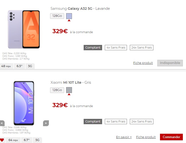 Aujourd’hui, nous opposons les Samsung Galaxy A32 5G et Xiaomi Mi 10T Lite, tous les deux compatibles avec la 5G et vendus à 329 euros. Notez d’ailleurs qu’ils sont proposés en plusieurs fois sans frais.