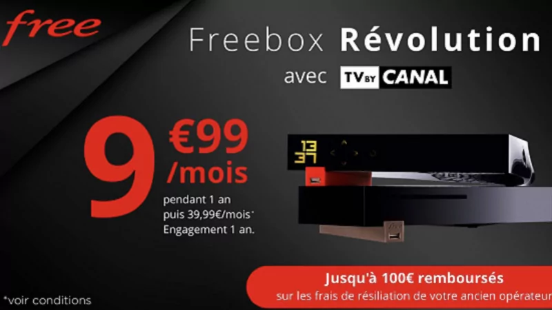 • Forfait Freebox Révolution avec TV by CANAL Panorama à 9,99€/mois pendant 1 an puis 39,99€/mois.