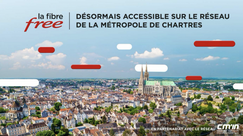 Free annonce son arrivée sur le réseau publique de Chartres Métropole Innovations Numériques. Pas moins de 9000 foyers sont désormais éligibles à ses Freebox en fibre optique.