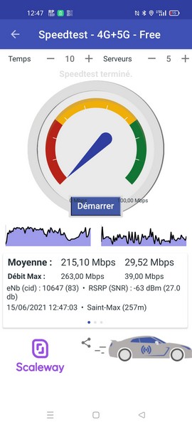 Et des débits mesurés en extérieur :