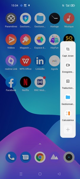 - La barre latérale de raccourcis à solliciter grâce à la gélule sur le bord de l’écran