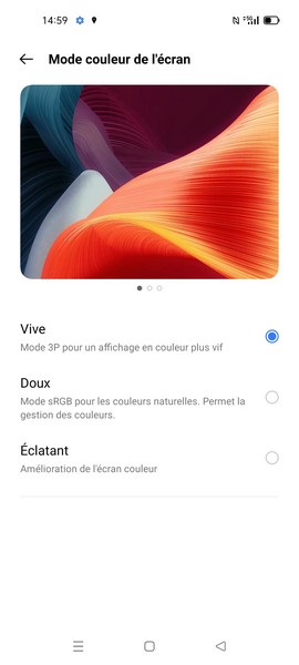 L’écran du Realme GT est également convaincant. Il propose les belles couleurs et les noirs profonds de l’AMOLED, la définition Full HD+, le taux de rafraîchissement 120 Hz apportant de la fluidité en navigation et en jeu et la luminosité suffisante pour un usage confortable en extérieur avec un fort ensoleillement. Celui-ci opte également pour le poinçon excentré qui se retrouve hors du champ de vision en vidéo et en jeu, se faisant ainsi vite oublier. Comme à l’accoutumée, chaleur d’affichage et taux de rafraîchissement pourront être ajustés depuis les paramètres. Tout comme on pourra activer ou non un mode Always-on Display personnalisable.