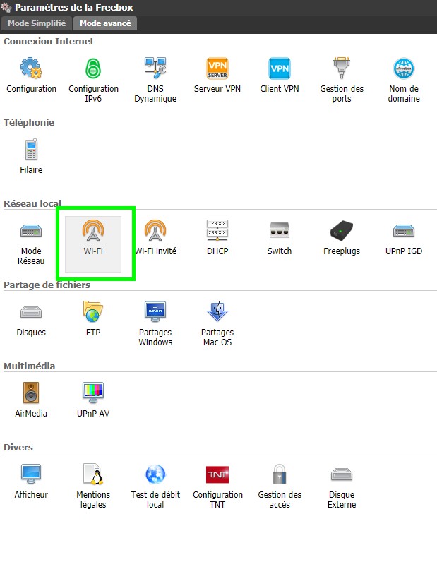 Si tout le monde émet sur le même canal pour le Wi-Fi, forcément, ça finit par créer des bouchons. Pour savoir si vous vous trouvez dans un canal Wi-Fi encombré, il suffit d’aller dans Freebox OS, l’interface de gestion des Freebox disponible à cette adresse, avant de cliquer sur l’icône “Paramètres de la Freebox” et sur l’icône “Wi-Fi”.