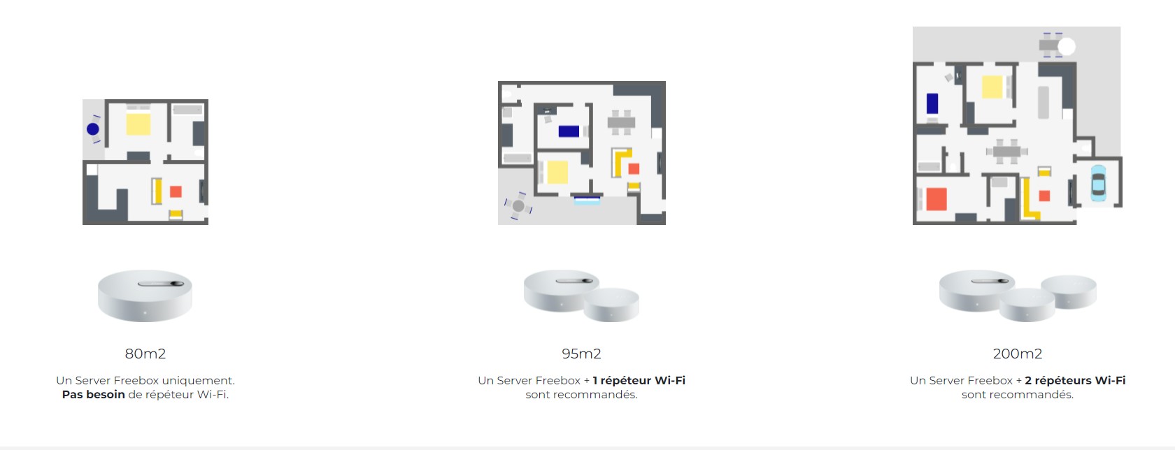 Sur son site, Free recommande un répéteur à partir d’une surface de 95 m² et deux à partir de 200 m².