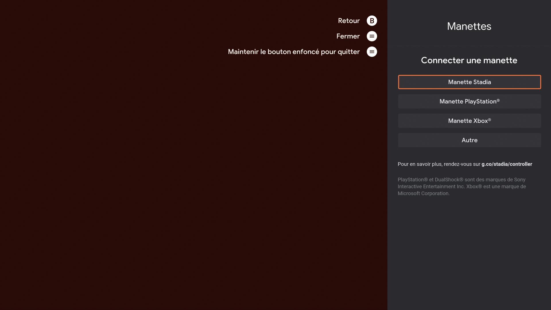 Côté manettes, vous pourrez utiliser les contrôleurs Stadia, PlayStation et Xbox.