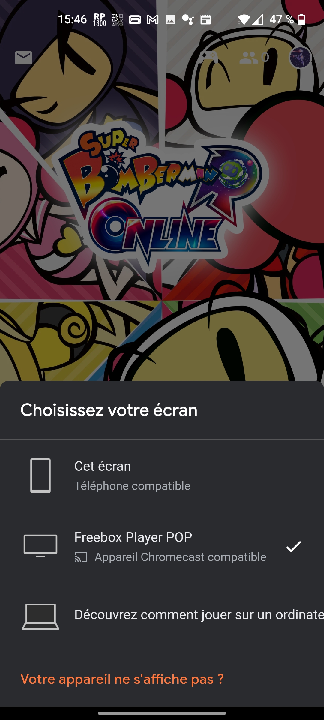 Pour commencer, il faudra que le smartphone soit connecté au réseau Wi-Fi de la Freebox. Une fois l’application Stadia chargée sur le smartphone et le jeu choisi, un menu permettra de choisir sur quel écran afficher le contenu. Il faudra simplement choisir le player Freebox.