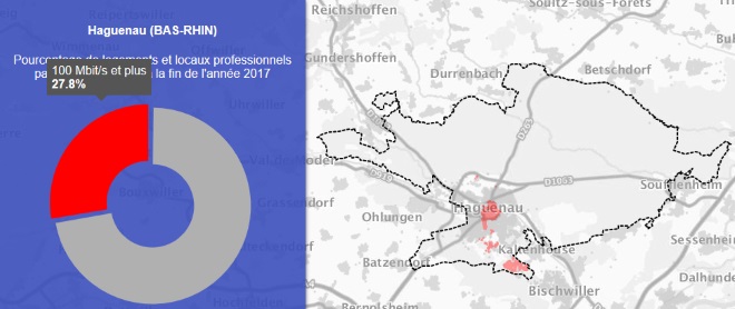 Aujourd’hui, grâce aux données fournies par l’Observatoire France Très Haut Débit, nous vous proposons de découvrir le déploiement du très haut débit pour tous les opérateurs sur la 225ème ville la plus peuplée de France : Haguenau.